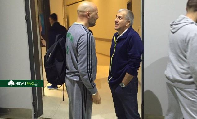 Ο Σάσα Τζόρτζεβιτς συνάντησε τον άλλοτε συμπαίκτη, αλλά και προπονητή του στην Παρτίζαν και τα είπαν πριν την προπόνηση του Παναθηναϊκού, με τον Ομπράντοβιτς να περιμένει και να χαιρετά τα μέλη της «πράσινης» αποστολής.