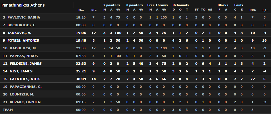Οι πόντοι των παικτών του Παναθηναϊκού: