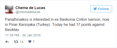 Δημοσιεύματα από την Ισπανία αναφέρουν πως οι «πράσινοι» ενδιαφέρονται για την απόκτηση του Κόλτον Άιβερσον, ο οποίος φοράει τη φανέλα της πρωταθλήτριας Τουρκίας, Πίναρ Καρσίγιακα.