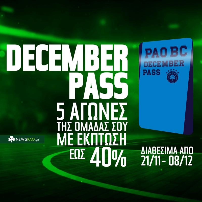 «Η ΚΑΕ Παναθηναϊκός Superfoodsενημερώνει τους φιλάθλους της πως έθεσε σε κυκλοφορία το mini διαρκείας, December Pass, που αφορά στις πέντε σημαντικές εντός έδρας αναμετρήσεις που θα δώσει η ομάδα μας τον μήνα Δεκέμβριο.