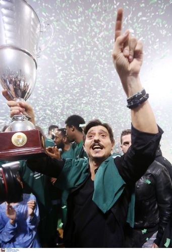 Ο Δημήτρης Γιαννακόπουλος, χάρηκε με την ψυχή του το Κύπελλο του Παναθηναϊκού και το έδειξε.
