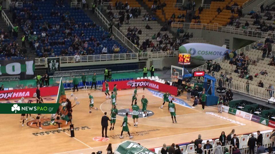 Οι παίκτες του Παναθηναϊκού Superfoods βγήκαν για ζέσταμα και ο κόσμος που υπήρχε εκείνη την ώρα στο ΟΑΚΑ τους αποθέωσε.