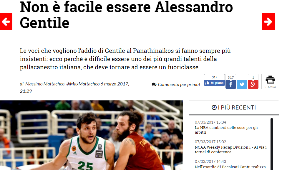 Το “baskeinside” υποστηρίζει πως “Δεν είναι εύκολο να είσαι ο Τζεντίλε, πρέπει να βρει την ηρεμία και την χαρά στο παιχνίδι του” ενώ συμπληρώνει “Ένας παίκτης του δικού του ταλέντου οφείλει να επιστρέψει με κάθε κόστος”.