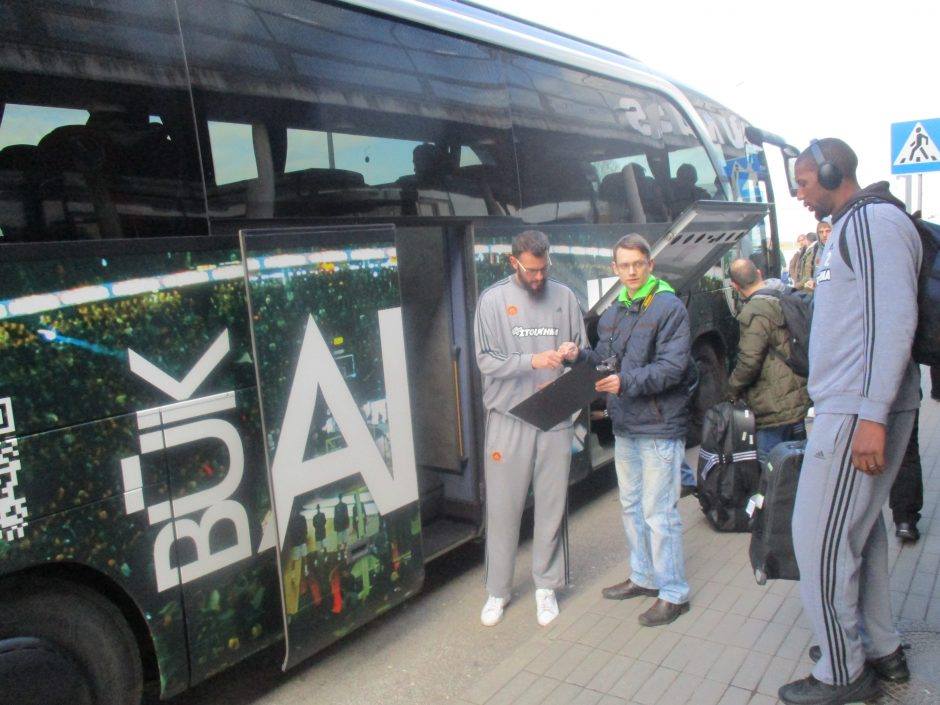 Αρκετοί Λιθουανοί έσπευσαν να χαιρετήσουν τους παίκτες του Εξάστερου, να πάρουν αυτόγραφα και να φωτογραφηθούν μαζί τους.