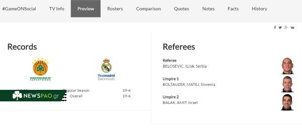 Γνωστοί έγιναν οι διαιτητές της αναμέτρησης του Παναθηναϊκού Superfoods με τη Ρεάλ Μαδρίτης στο ΟΑΚΑ, για την 25 αγωνιστική της Ευρωλίγκα, με τους “πράσινους” να θέλουν μόνο τη νίκη.