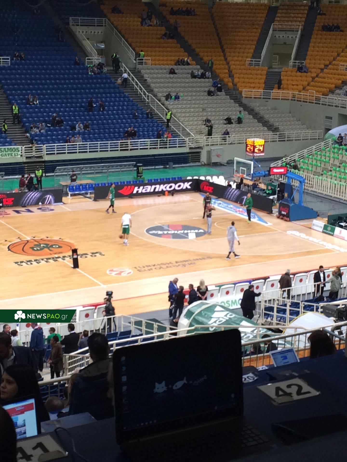 Οι παίκτες του Παναθηναϊκού, βγήκαν για τα πρώτα σουτάκια στο παρκέ του ΟΑΚΑ.