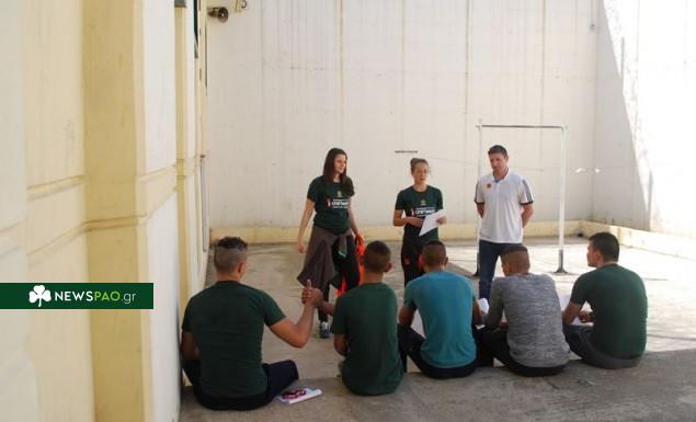 Ο παλαίμαχος άσος του «τριφυλλιού» προπόνησε τα παιδιά με πάσες και διαγωνιστικά σουτ, ενώ τους ανέλυσε τις θέσεις στο μπάσκετ και τα χαρακτηριστικά τους. Ακολούθως, έπαιξε «μονό» με τους νεαρούς κρατουμένους και τους μίλησε για τη σημασία του αθλητισμού.