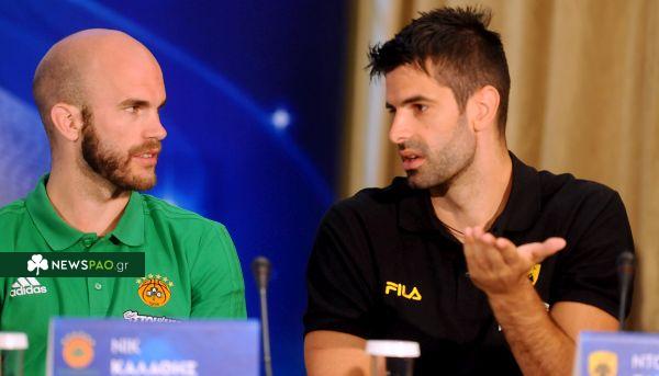 Μπορεί να είναι αντίπαλοι στα παρκέ, αλλά οι Νικ Καλάθης και Ντούσαν Σάκοτα έχουν πολύ καλή σχέση και το έδειξαν και κατά τη διάρκεια της συνέντευξης Τύπου στης Basket League.