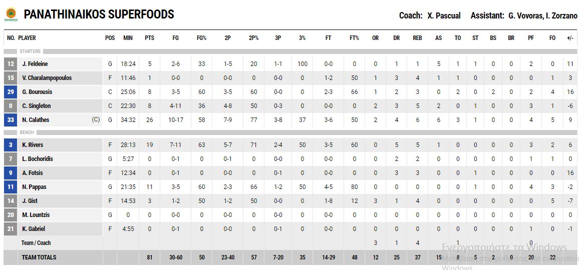 Οι πόντοι των παικτών του Παναθηναϊκού:
