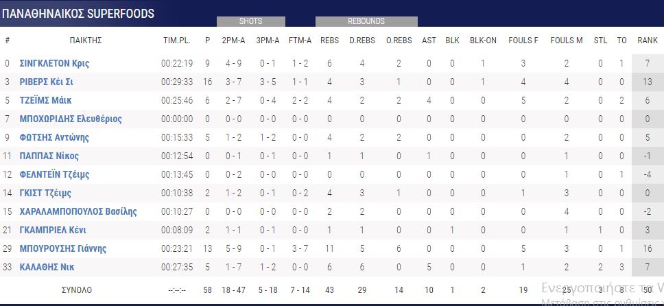 Για τον Παναθηναϊκό ξεχώρισαν ο Ρίβερς και ο Μπουρούσης, κακό ματς από τους Καλάθη και Τζέιμς.
