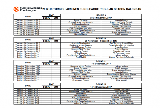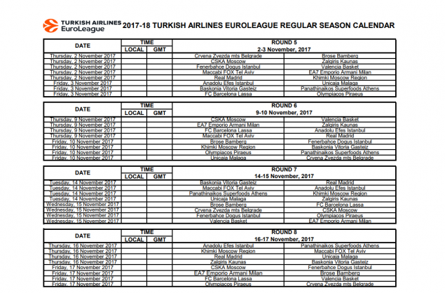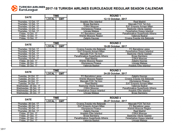 Τη δεύτερη αγωνιστική, την Πέμπτη 19 Οκτώβρη το Τριφύλλι υποδέχεται τη Μπάμπεργκ ενώ ακολουθούν κάποιες πολύ δύσκολες αναμετρήσεις με ΤΣΣΚΑ (εκτός), Φενέρ (εντός) και Μπασκόνια (εκτός).