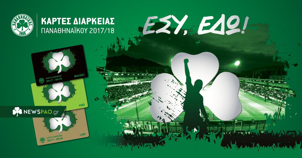 Περισσότερες λεπτομέρειες για τον τρόπο διάθεσης, τα προνόμια και τις κατηγορίες Καρτών Διαρκείας της αγωνιστικής περιόδου 2017-18 μπορείτε να βρείτε εδώ, ενώ για πληροφορίες μπορείτε να καλείτε τηλεφωνικά στο 210 8709000.