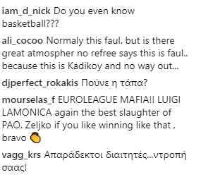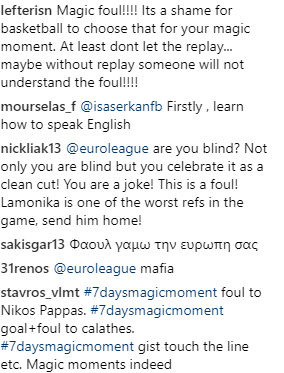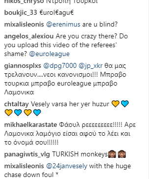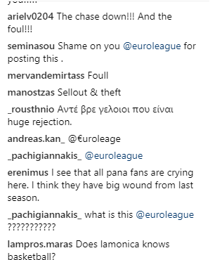 Μάλιστα, εκατοντάδες είναι τα σχόλια στο εμετικό post της Euroleague, που παρουσιάζει το καθαρό φάουλ του Βέσελι ως τάπα.