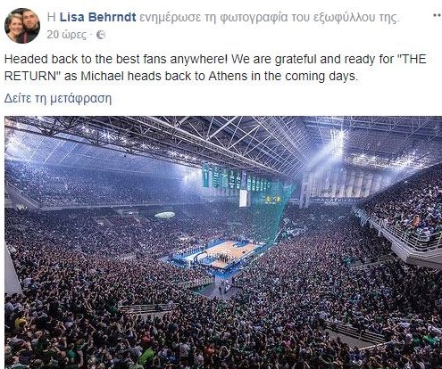 «Γυρίζουμε στους καλύτερους οπαδούς που υπάρχουν. Είμαστε ευγνώμονες και έτοιμοι για την επιστροφή, αφού ο Μάικ επιστρέφει στην Αθήνα τις προσεχείς ημέρες»