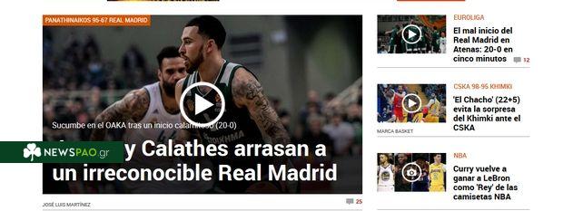 Mundo Deportivo: Ντροπιαστικός ξυλοδαρμός της Ρεάλ Μαδρίτης από τον Παναθηναϊκό.