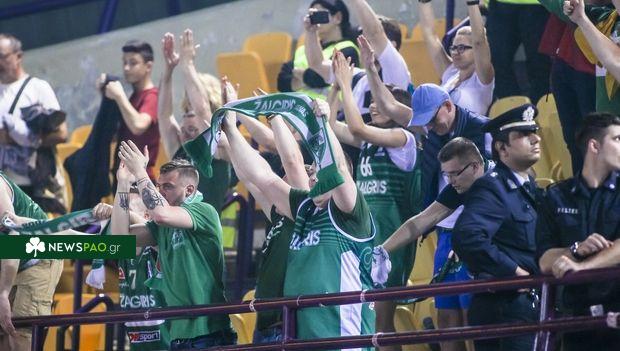 Δεν μπορούσαν να τη χωνέψουν μερικοί γαύροι απόψε και κινήθηκαν απειλητικά προς τη μεριά των οπαδών της Ζαλγκίρις που πανηγύριζαν το διπλό της ομάδας τους…
