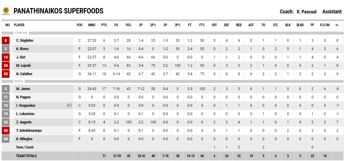 Οι πόντοι των παικτών του Παναθηναϊκού: