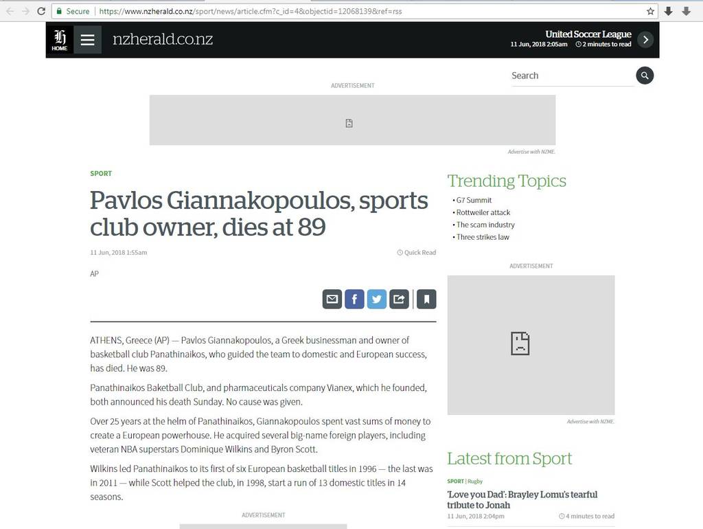 Παγκόσμιο θρήνο προκάλεσε η είδηση της απώλειας του Παύλου Γιαννακόπουλου, με πρακτορεία ειδήσεων από όλων των κόσμο να καλύπτουν το συγκεκριμένο θέμα.