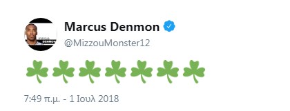 Ιδιαίτερα χαρούμενος εμφανίζεται ο Μάρκους Ντένμον για την παραμονή του στον Παναθηναϊκό με τον γκαρντ από το Μπρονξ να ανεβάζει ένα σύντομο και ουσιώδες μήνυμα στο Twitter.