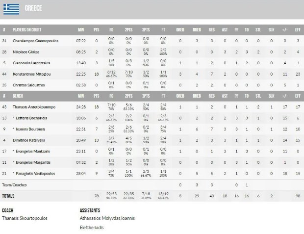 Ο Έλληνας φόργουορντ σημείωσε 18 πόντους (7/10 δίποντα, 1/2 τρίποντα, 1/1 βολή), 7 ριμπάουντ και 2 ασίστ.