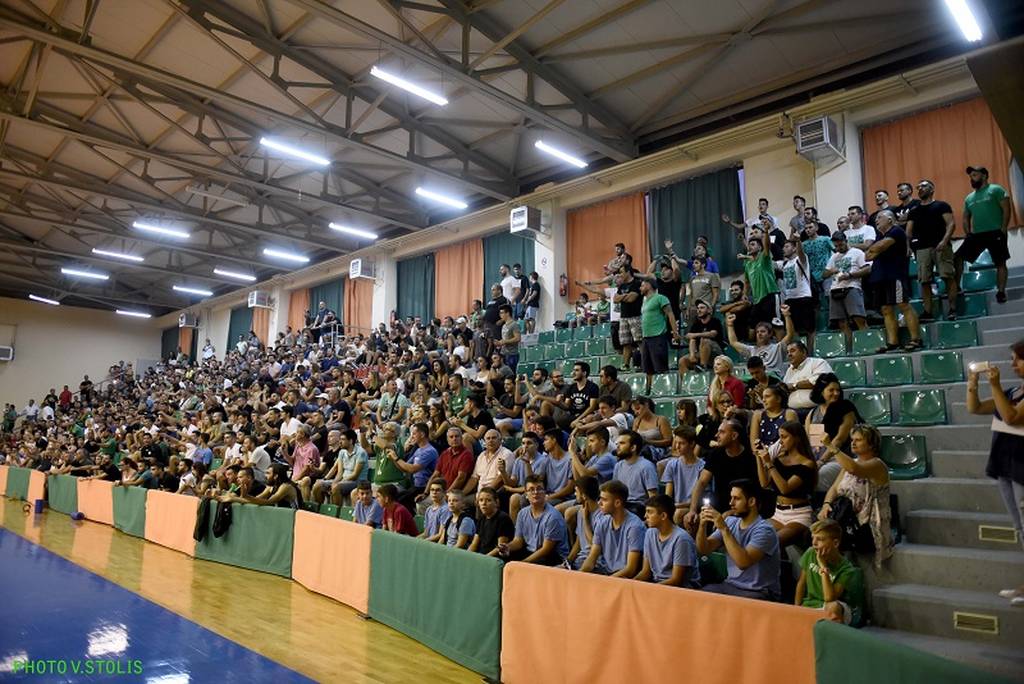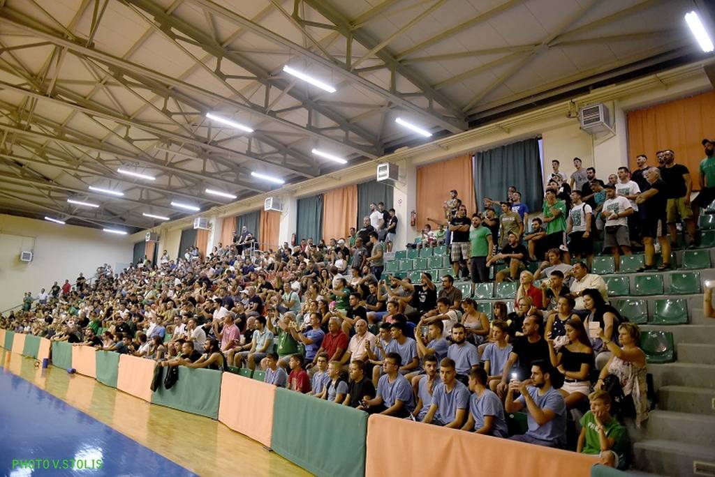 Οι φίλοι της ομάδας δημιούργησαν εντυπωσιακή ατμόσφαιρα με συνθήματα και χειροκροτήματα, ενώ υπήρχαν και πολλές οικογένειες με μικρά παιδιά.