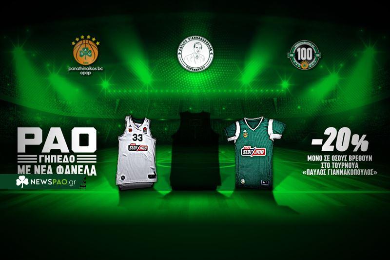Τη μοναδική ευκαιρία να αποκτήσουν τη νέα επίσημη επετειακή φανέλα του Παναθηναϊκού ΟΠΑΠ, με το ειδικά σχεδιασμένο λογότυπο των 100 χρόνων, με έκπτωση 20% θα έχουν όσοι φίλαθλοι βρεθούν στο 1ο Τουρνουά «Παύλος Γιαννακόπουλος».