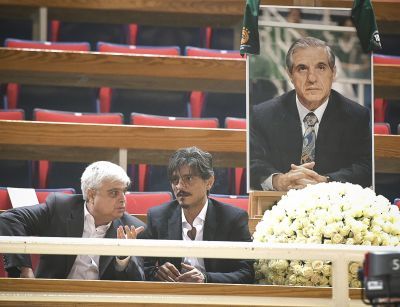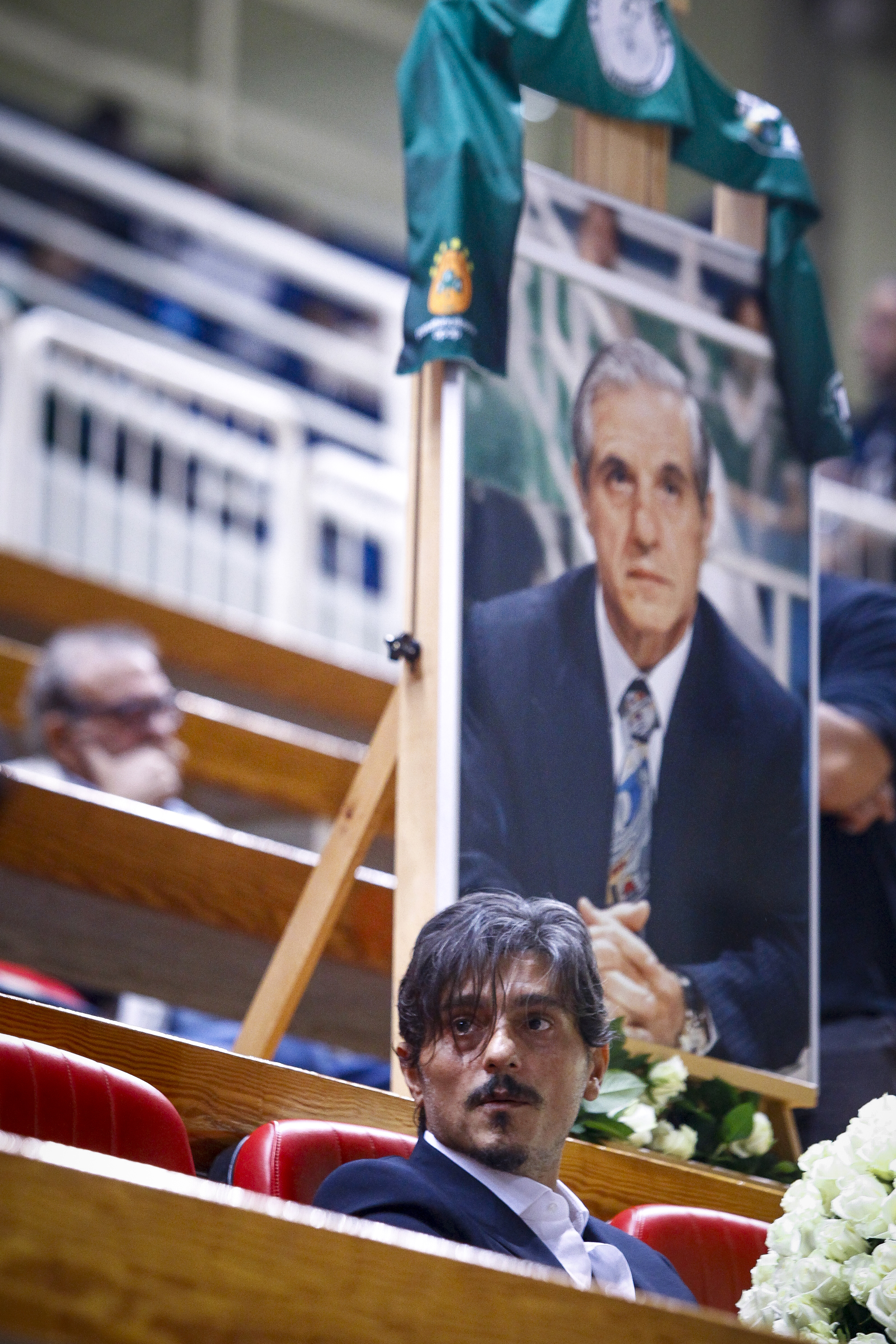 Ανατριχιαστική εικόνα στο ΟΑΚΑ, καθώς στη θέση που πάντα καθόταν ο Παύλος Γιαννακόπουλος βρίσκεται η φωτογραφία του εμβληματικού ηγέτη του τριφυλλιού, ενώ ο φωτογραφικός φακός… έπαιξε με το γιο του Δημήτρη να βρίσκεται στο ίδιο πλάνο!