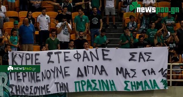 Το πανό έγραφε: «Κύριε Στέφανε σας περιμένουμε δίπλα μας για να σηκώσουμε την πράσινη σημαία».