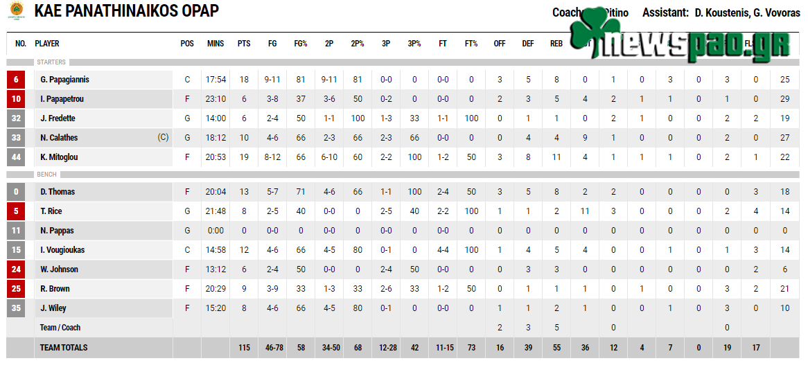 Οι πόντοι των παικτών του Παναθηναϊκού: