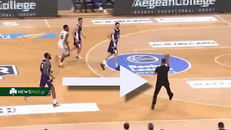 Ο Τζούστον παρέλαβε μια φοβερή ασίστ από τον διαιτητή και κάρφωσε στην ρακέτα σε μια φάση που δεν περίμενε κανείς στο ΟΑΚΑ.