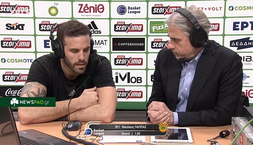Ο Νίκος Παππάς μίλησε στην κάμερα της ΕΡΤ μετά τη νίκη του Παναθηναϊκού κόντρα στην Καρδίτσα.