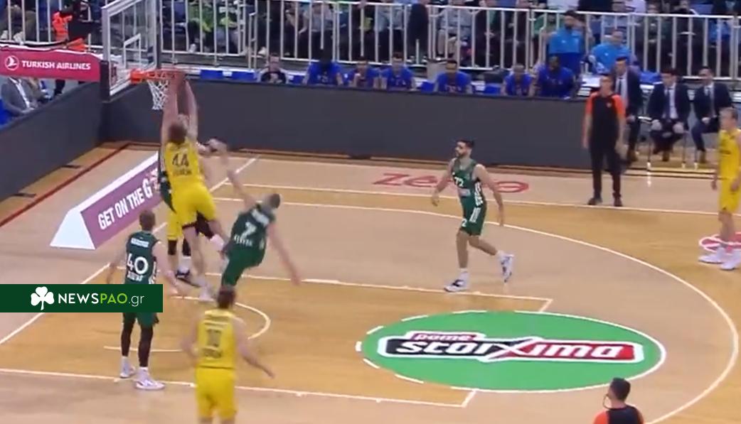 Ο Λιθουανός σέντερ έκανε μια μεγάλη τάπα στη β’ περίοδο με την Άλμπα Βερολίνου στο ΟΑΚΑ.