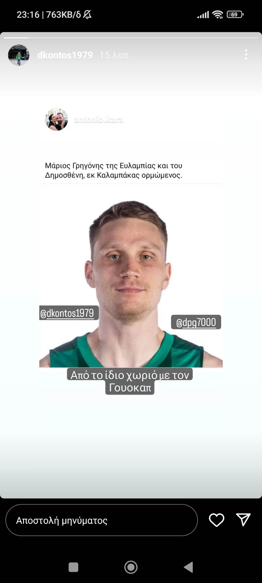 Ένας φίλος του Τριφυλλιού ανέβασε την ακόλουθη φωτογραφία στο Instagram με τον «Μάριο Γρηγόνη» κάνοντας tag τον Δημήτρη Γιαννακόπουλο και τον Δημήτρη Κοντό.
