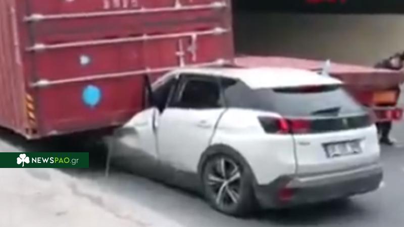 Ο αρχηγός της Αναντολού Εφές στάθηκε εξαιρετικά άτυχος, όταν κοντέινερ από νταλίκα έπεσε στο αμάξι του και προκάλεσε ένα τροχαίο ατύχημα.