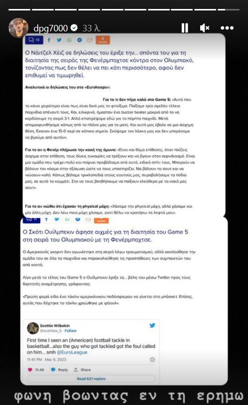 «Πρώτη φορά είδα ένα τάκλιν αμερικάνικου ποδόσφαιρου να γίνεται στο μπάσκετ. Επίσης, αυτός που δέχτηκε το τάκλιν χρεώθηκε με φάουλ».
