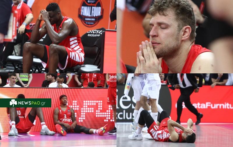 Οι παίκτες του Ολυμπιακού κατέρρευσαν μετά τη νίκη της Ρεάλ Μαδρίτης στον τελικό της Ευρωλίγκα.