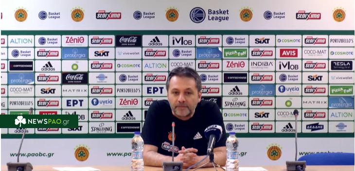 Για την ανισορροπία στην άμυνα στην περιφέρεια και τη ρακέτα: «Ο Γκουντάιτις πάντα είναι μαχητικός. Είδαμε σοβαρό πρόβλημα στην άμυνα στο πρώτο ημίχρονο κυρίως με τον Φρανσίσκο και αυτό μας μπέρδεψε κάπως. Και οι ψηλοί μας παίκτες έμειναν λίγο πιο πίσω για να προστατεύουν αυτά τα ντράιβ. Αλλά στο δεύτερο ημίχρονο ξεκίνησε ο Παπαγιάννη με τον Αγραβάνη και ήταν σωστοί στην άμυνα. Και αυτό έπαιξε ρόλο να δεχθούμε 10 πόντους. Όλη η ομάδα ήθελα να κερδίζει γιατί μας πλήρωσε η ήττα του Σαββάτου και αυτό ίσως να δημιουργεί άγχος. Στο ημίχρονο καθαρίσαμε το μυαλό μας».