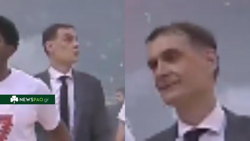 Ο Μπαρτζώκας φάνηκε από το πλάνο της τηλεόρασης να στέλνει φιλιά προς την εξέδρα.