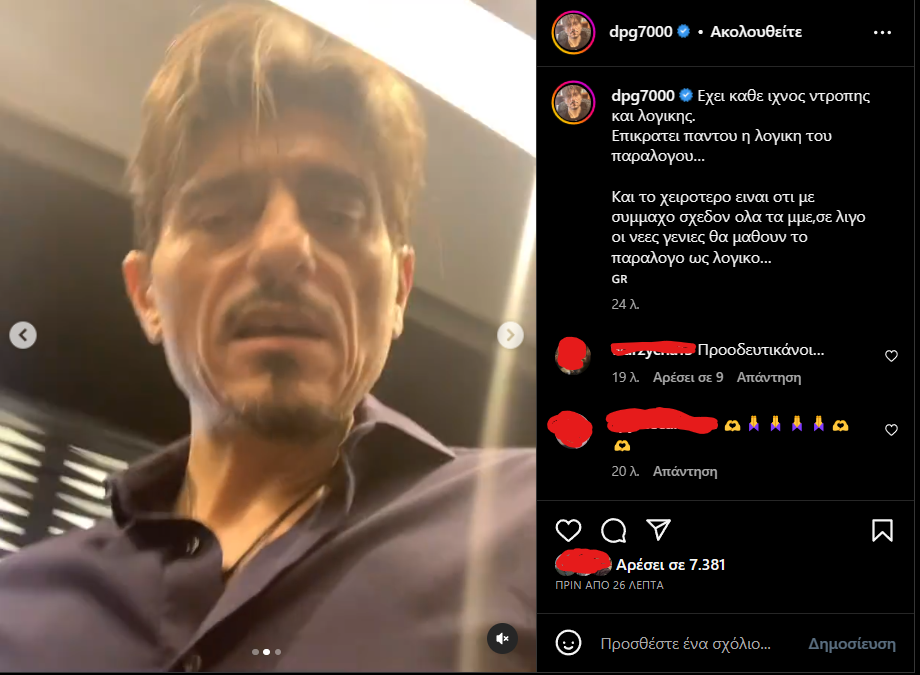 Το βράδυ της Δευτέρας εκείνος ανέβασε τα χαρακτηριστικά βίντεο στο προφίλ του στο Instagram και συμπλήρωσε με νέο μήνυμα: