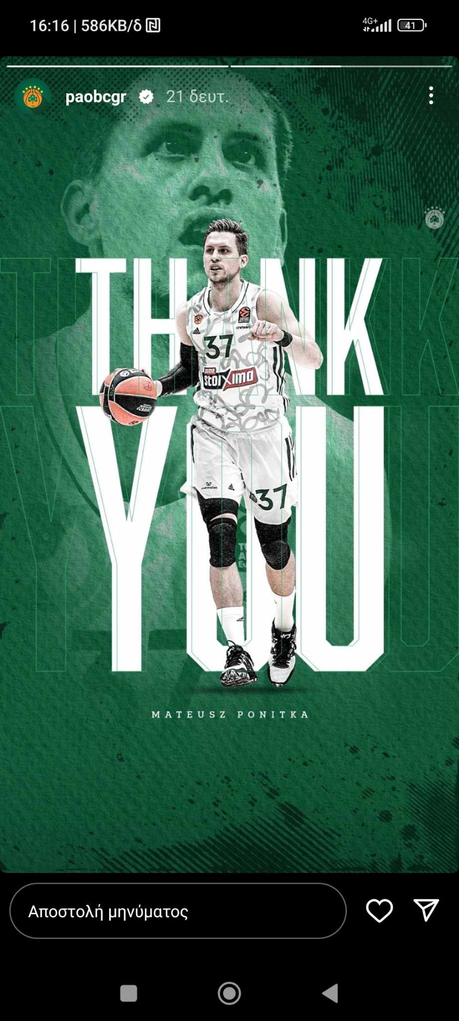 Η πράσινη ΚΑΕ με ανάρτηση ενημέρωσε πως ο Πονίτκα δεν θα συνεχίσει στο Τριφύλλι και τον ευχαρίστησε για την προσφορά του την περασμένη χρονιά.