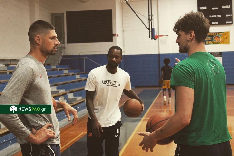Οι τρεις τους είχαν την ευκαιρία να μιλήσουν και να προπονηθούν μαζί, με τον Χεζόνια να φοράει ένα πράσινο t-shirt με ένα τεράστιο τριφύλλι στην πλάτη. Ηταν των Μπόστον Σέλτικς, ήταν του Παναθηναϊκού; Ίσως η μπροστινή πλευρά να έλυνε το γρίφο.