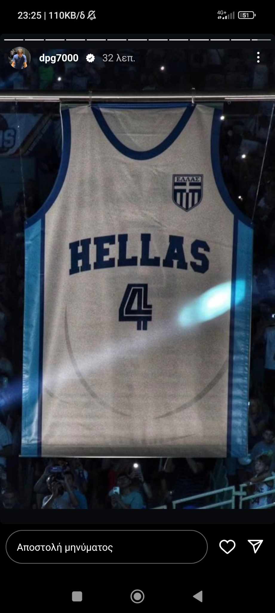 Συγκεκριμένα, έκανε ένα στόρι στο οποίο ανέβασε τη φανέλα του μεγάλου παίκτη της Εθνικής, του Άρη και του Παναθηναϊκού με τον αριθμό 4.