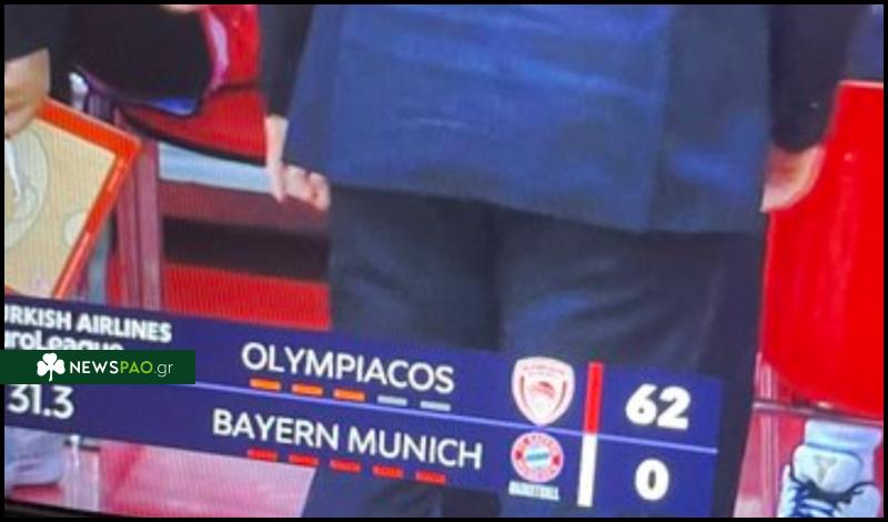 Αν κάποιος έβαλε το κανάλι Novasports Prime στο τελευταίο λεπτό της αναμέτρησης, θα είδε το σκορ ανάμεσα στον Ολυμπιακό και τη Μπάγερν στο 62-0!