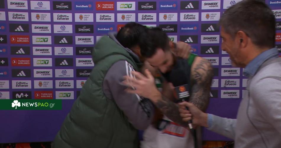 Λίγο μετά παίκτες, προπονητικό τιμ υποδέχθηκαν με… ανοιχτές αγκάλες και φωνές τον MVP του Παναθηναϊκού στα αποδυτήρια.