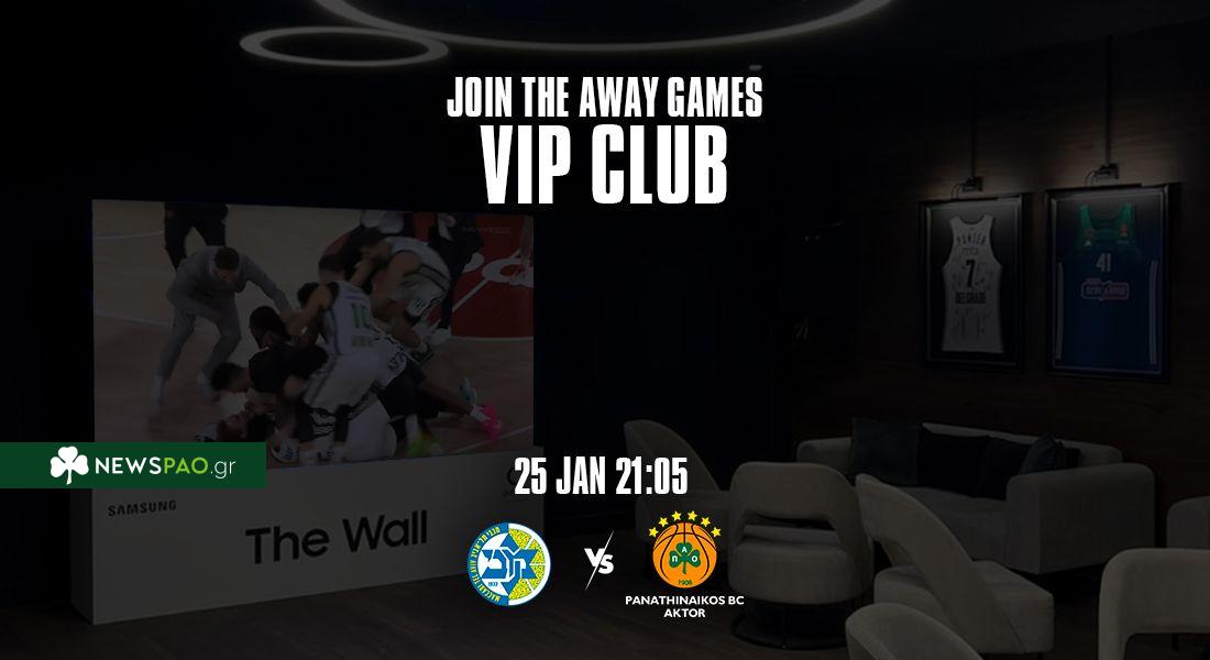 Η ΚΑΕ Παναθηναϊκός AKTOR δίνει στους φιλάθλους της τη δυνατότητα να παρακολουθήσουν τον εκτός έδρας αγώνα της ομάδας μας με την Maccabi Playtika Tel Aviv (25/1, 21.05) στο πλήρως ανανεωμένο και άκρως εντυπωσιακό Globalsat VIP Lounge του ΟΑΚΑ, μαζί με τους αθλητές που θα είναι εκτός αποστολής!