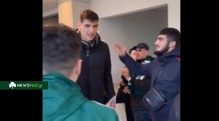 Στην αναχώρηση της αποστολής του Παναθηναϊκού για τα «Δύο Αοράκια» βρέθηκαν φίλοι της ομάδας για να εμψυχώσουν τους παίκτες του Εργκίν Αταμάν.