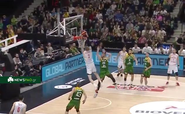 Ο «πύργος» του Παναθηναϊκού πήρε την πτήση και κάρφωσε στο λιθουανικό καλάθι προσφέροντας μπόλικο θέαμα.