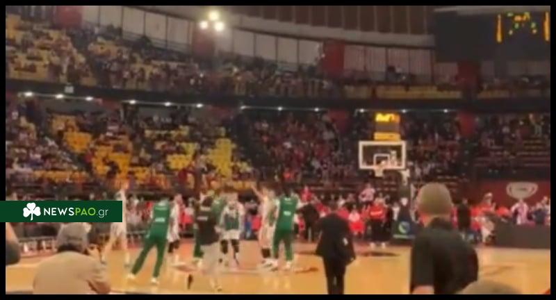 Οι πράσινοι βγήκαν στο παρκέ του ΣΕΦ ώστε να κάνουν το καθιερωμένο ζέσταμα πριν την αναμέτρηση με τον Ολυμπιακό.