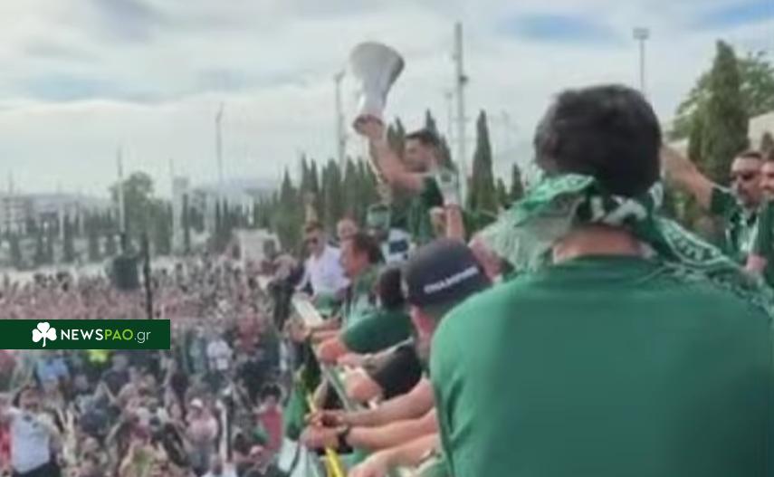 Ο Ιωάννης Παπαπέτρου πήρε το μικρόφωνο μπροστά στον κόσμο του Παναθηναϊκού.