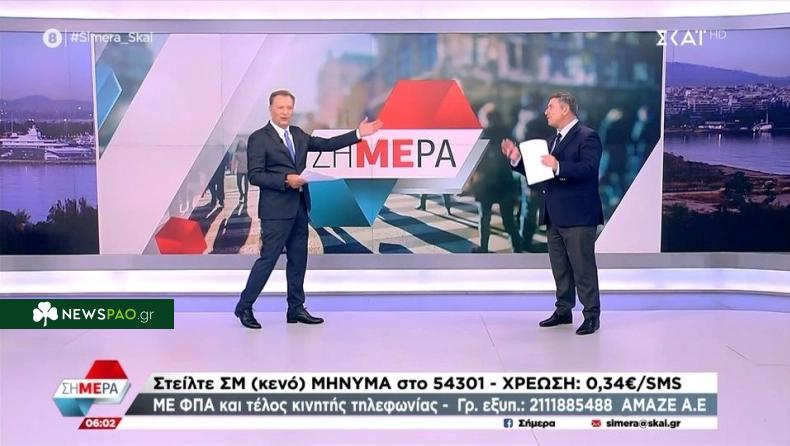 Ο Δημήτρης Οικονόμου περίμενε στη… γωνία τον Άκη Παυλόπουλο για να τον πικάρει. «Να σε ρωτήσω κάτι κύριε συνάδελφε… Είχαμε καμιά αθλητική δραστηριότητα χθες; Απογευματοβραδάκι είχαμε τίποτα; Σε πήρε ο ύπνος; Τον πήρε ο ύπνος τον συνάδελφο;», είπε για να ακολουθήσει ο παρακάτω διάλογος.